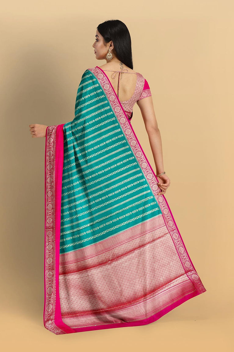 TEAL AND PURPLE JAAL GEORGETTE SAREE WITH BANARASI FANCY