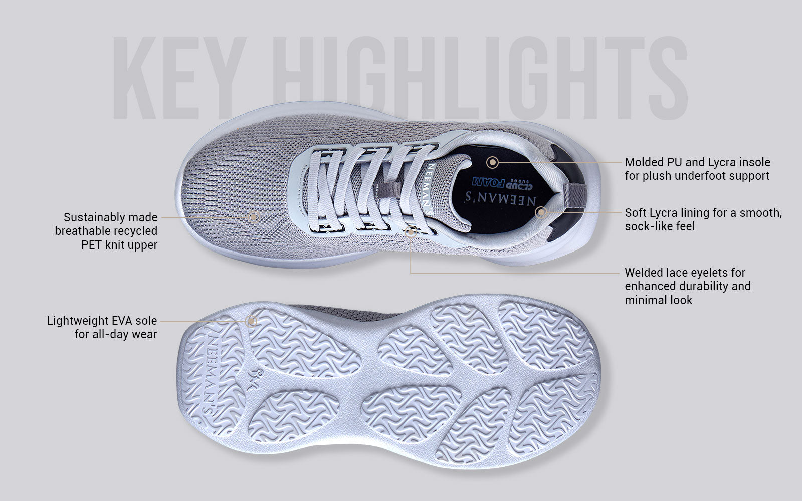 Meet The CloudKnit Sneakers—sleek, soft, and built to move. With a breathable knit upper made from recycled PET, a plush Lycra-lined interior, and a molded foam insole, every step feels light and supported. Reinforced with welded eyelets for durability and finished with Neeman’s EVA sole for flexible grip, these sneakers blend modern minimalism with all-day comfort. Designed to keep up, wherever the day takes you.