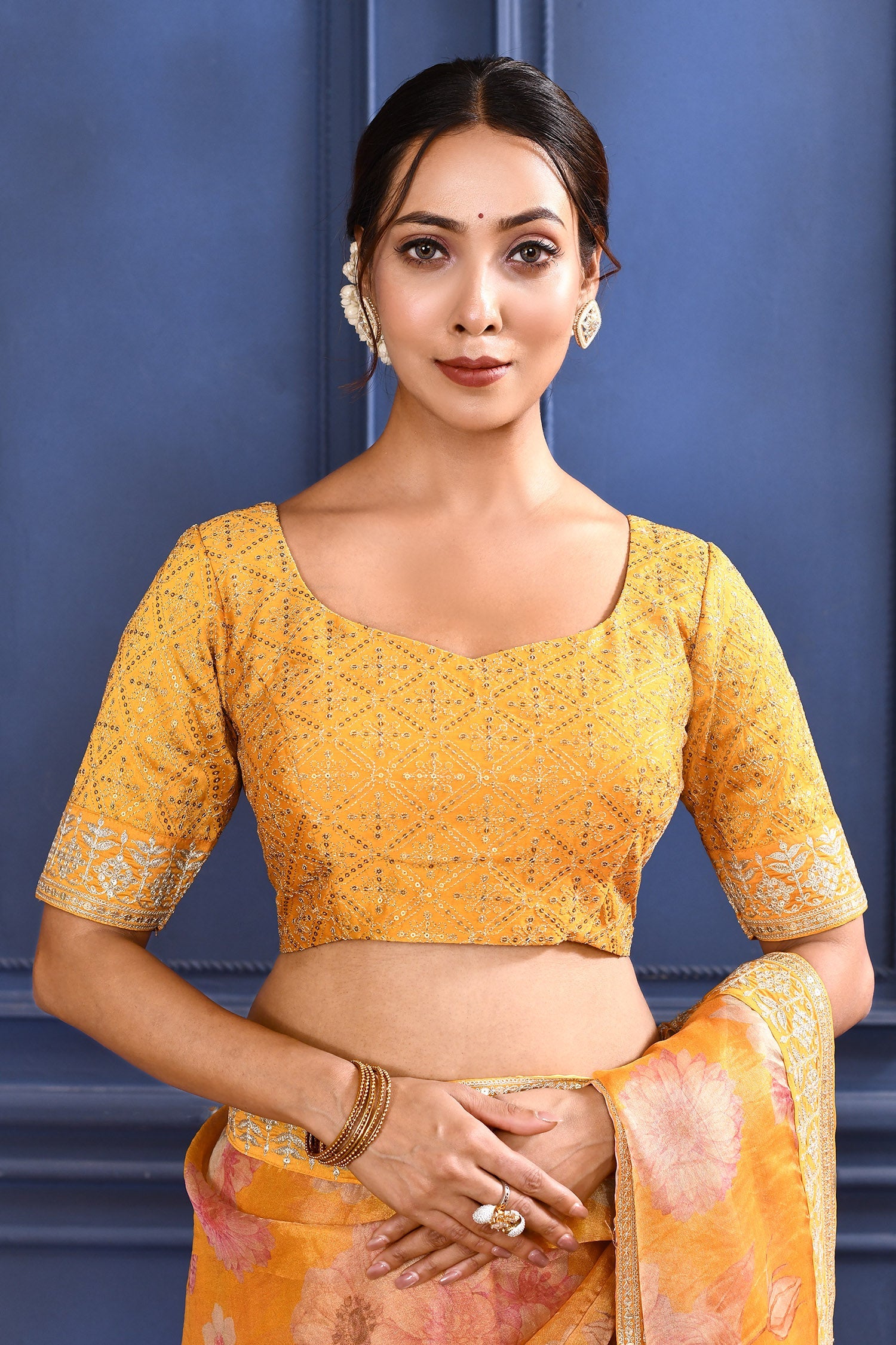 Turmeric Yellow Floral Printed Tissue Saree