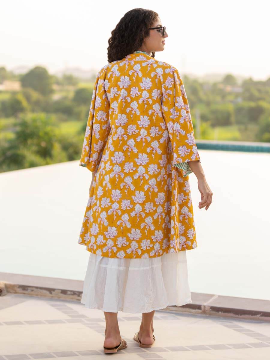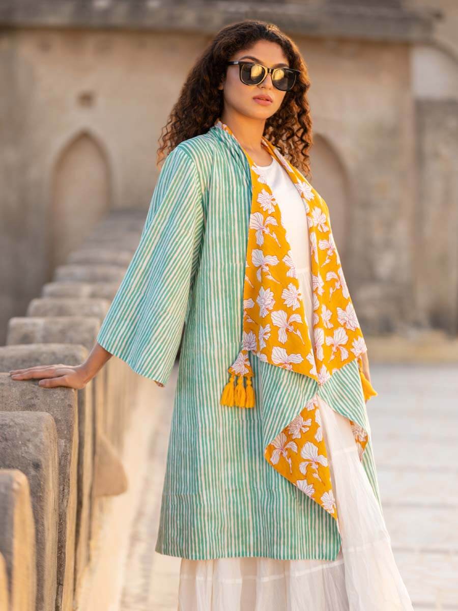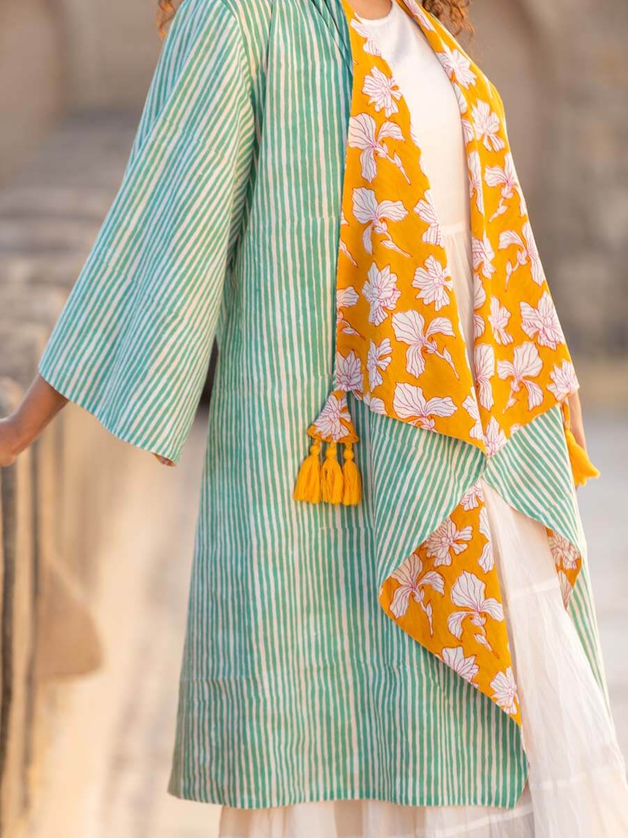 Valley of Flowers Block Printed Waterfall Reversible Shrug