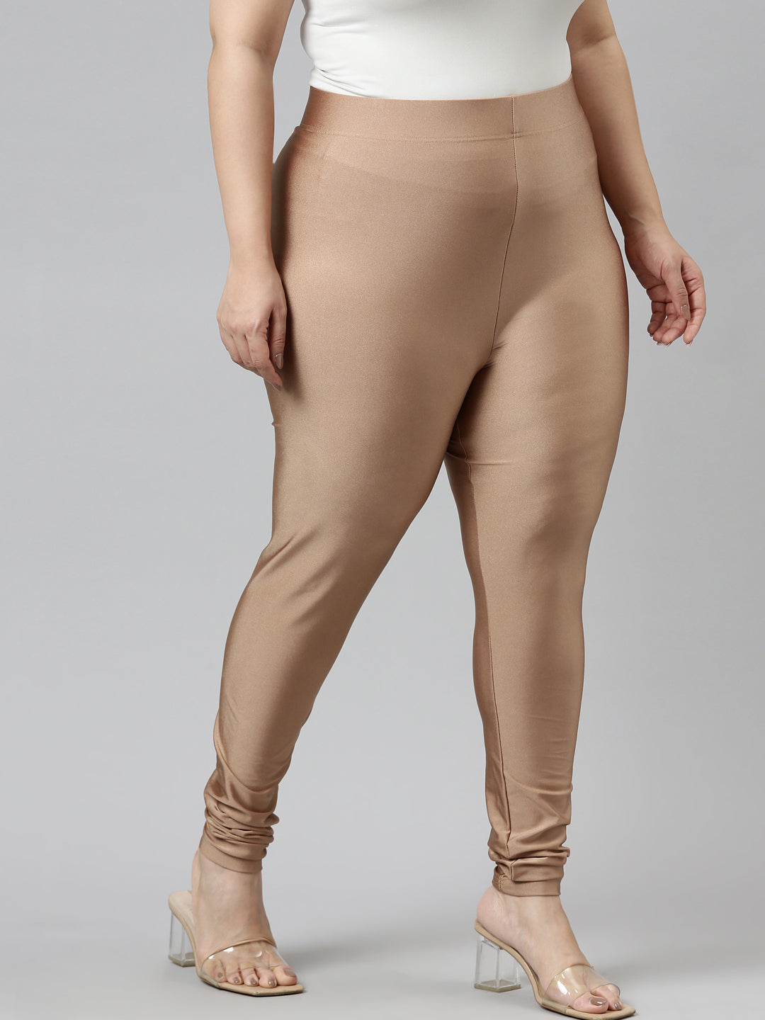 Go chic with a pair of Antique Gold Solid Shimmer Churidar Leggings. Made from high quality Nylon & Elastane, it has a elasticised waistband & gathers at the hemline.