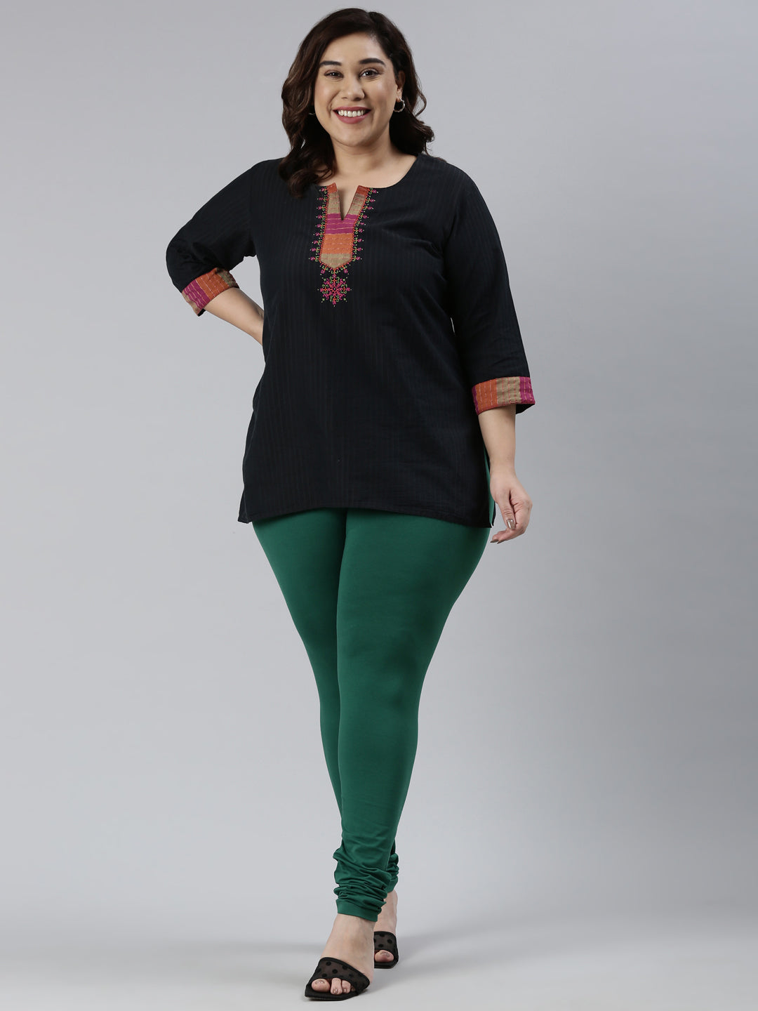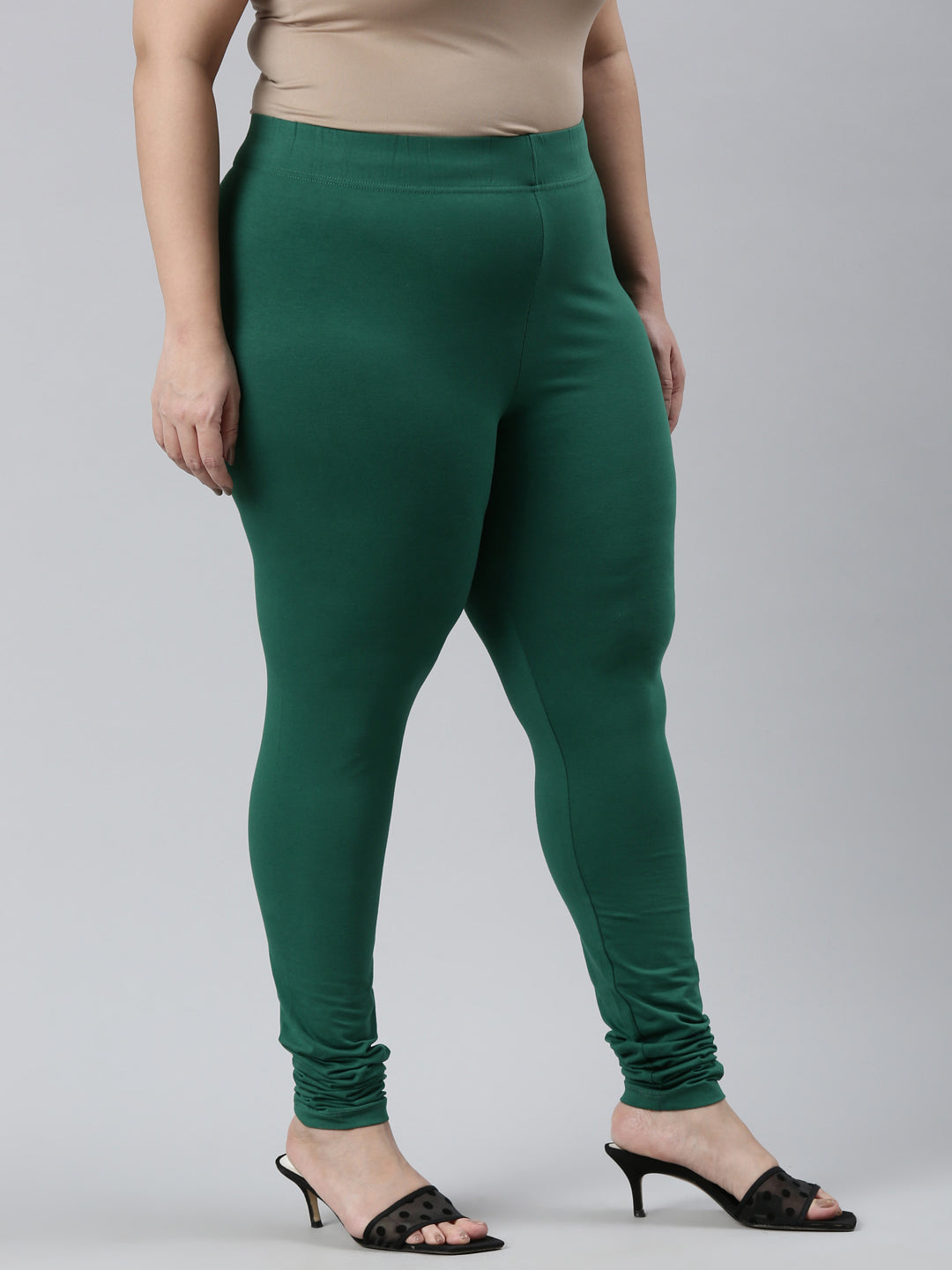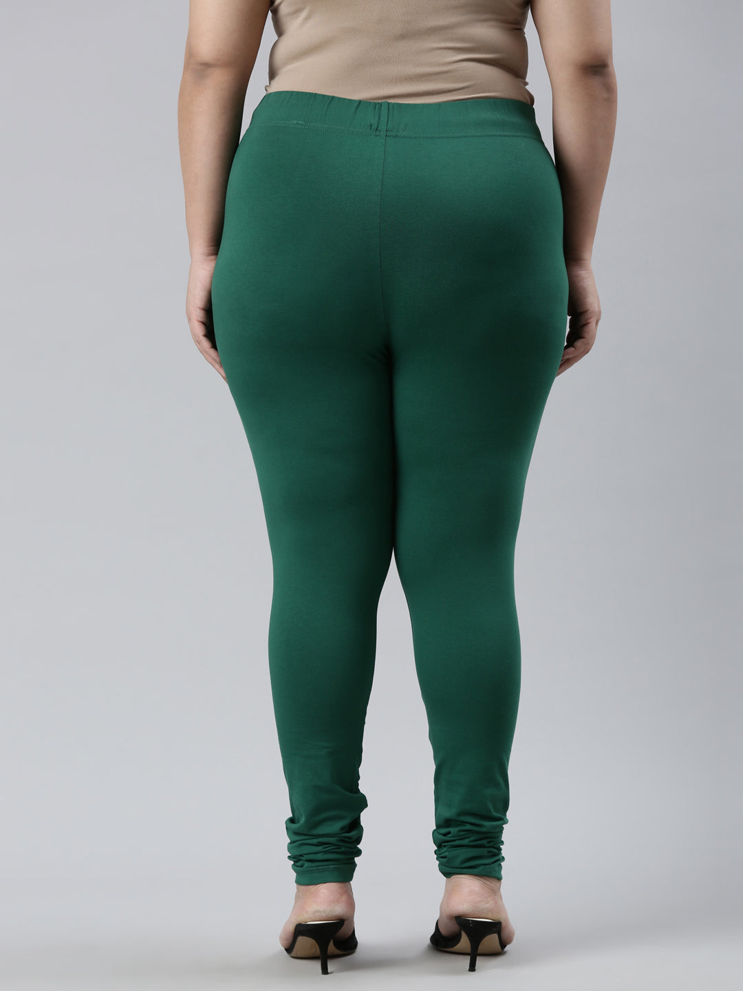 Go chic with a pair of Bottle Green Solid Churidar Leggings. Made from high quality cotton, it has a elasticised waistband & gathers at the hemline.