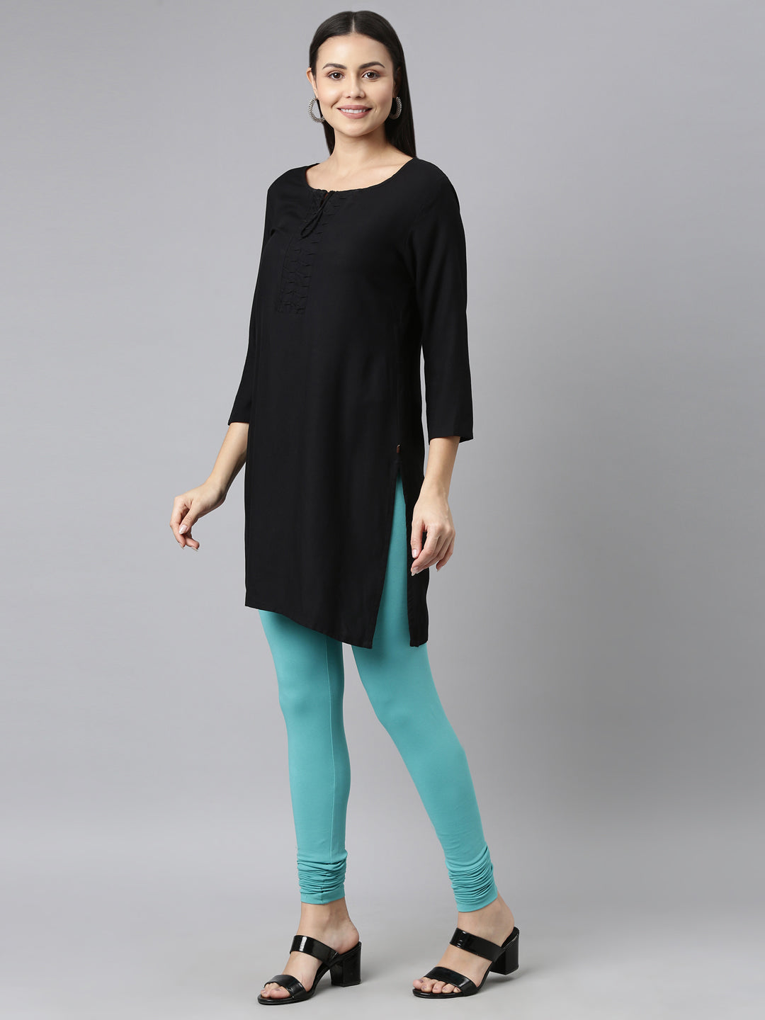 Go chic with a pair of Dark Mint Solid Churidar Leggings. Made from high quality cotton, it has a elasticised waistband & gathers at the hemline.