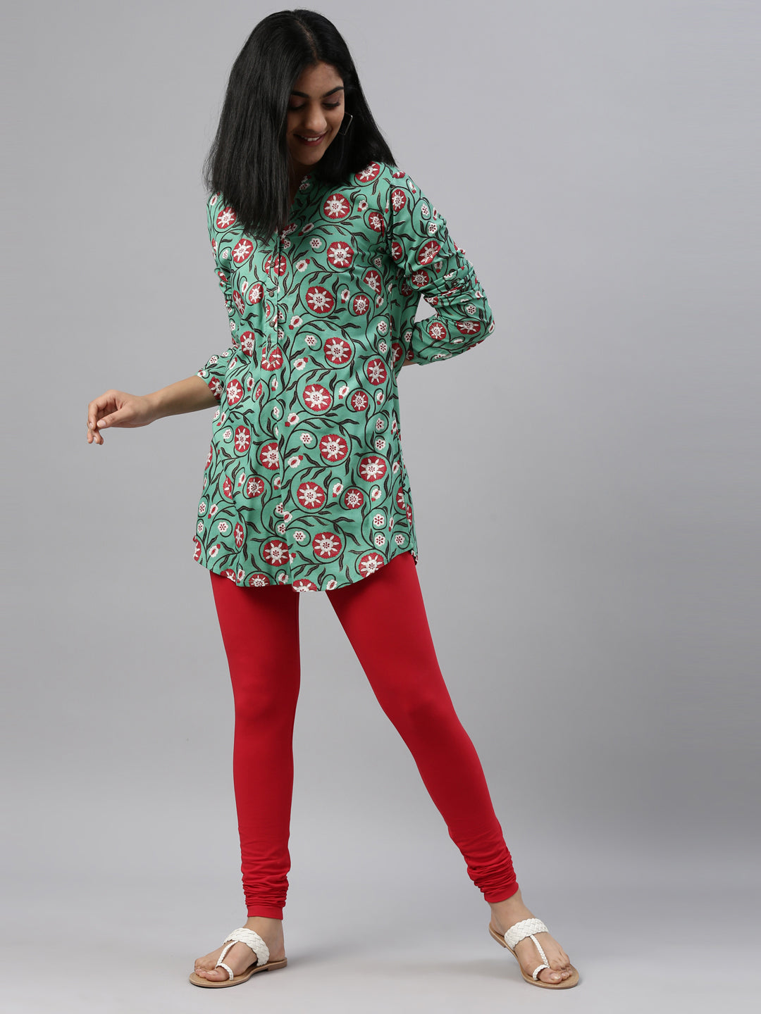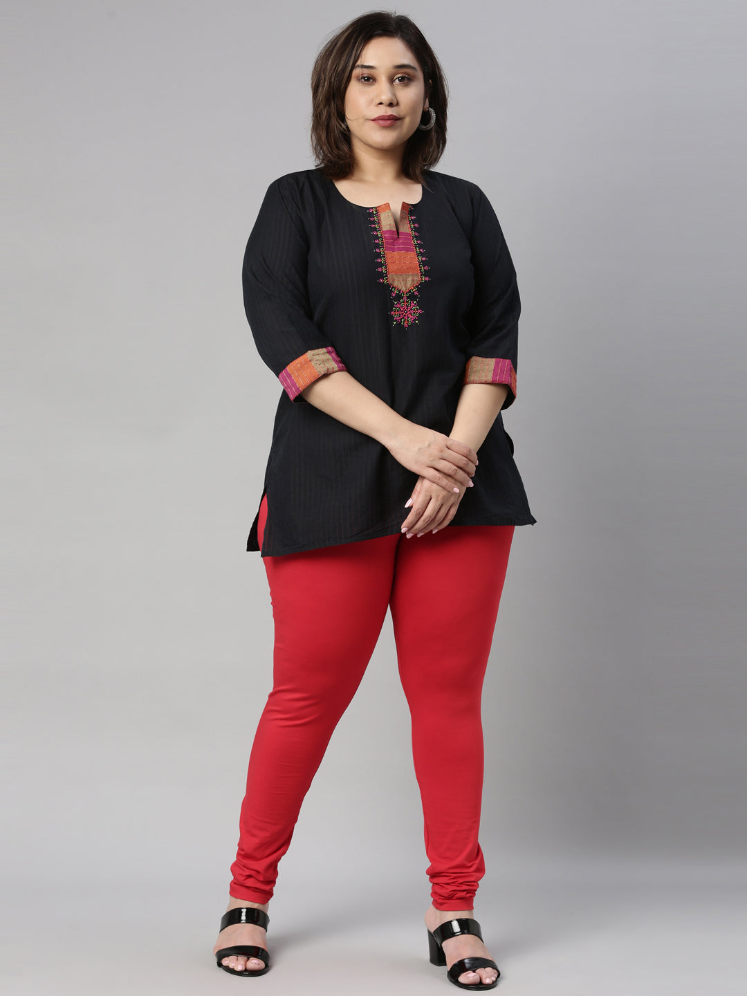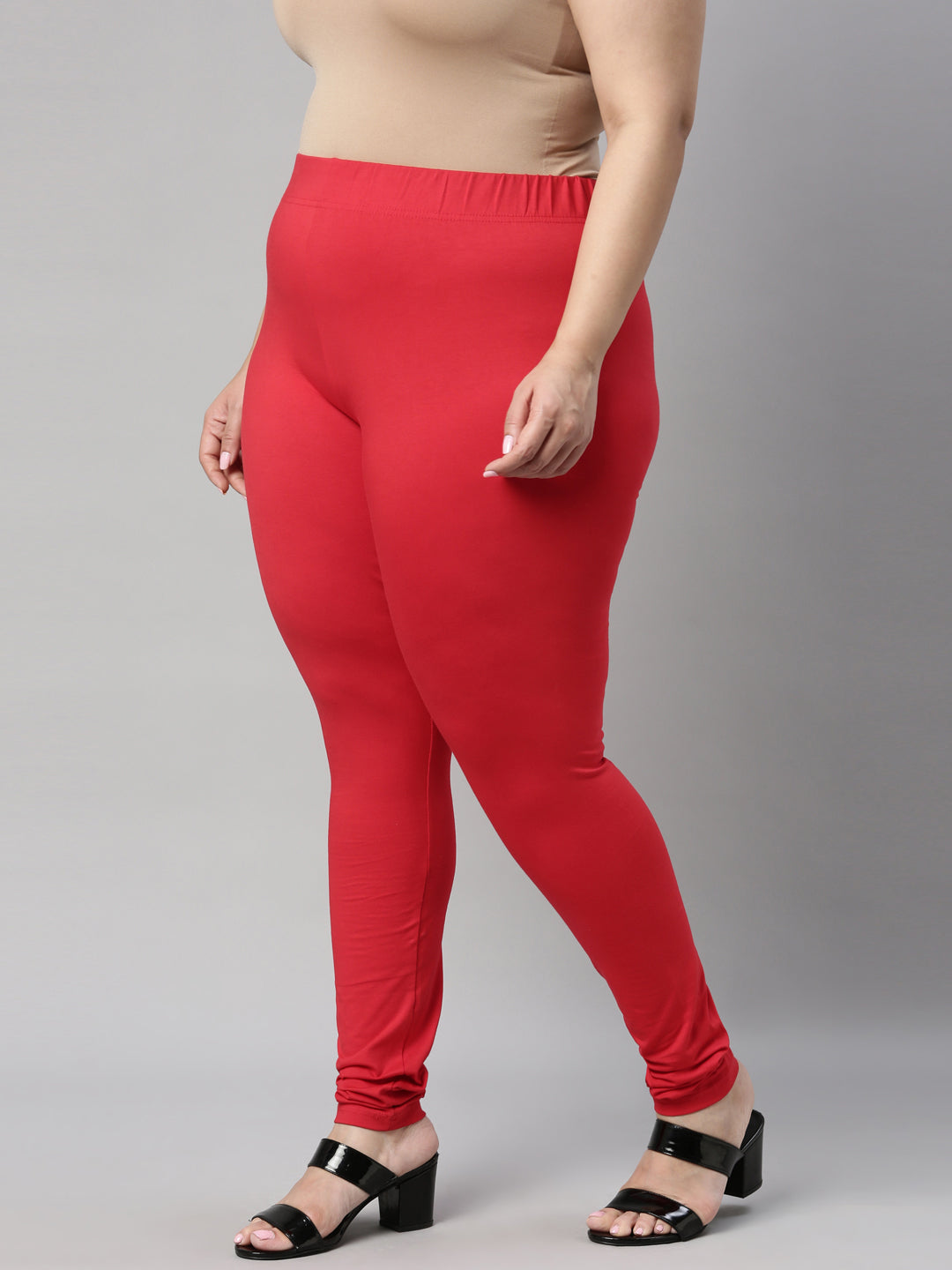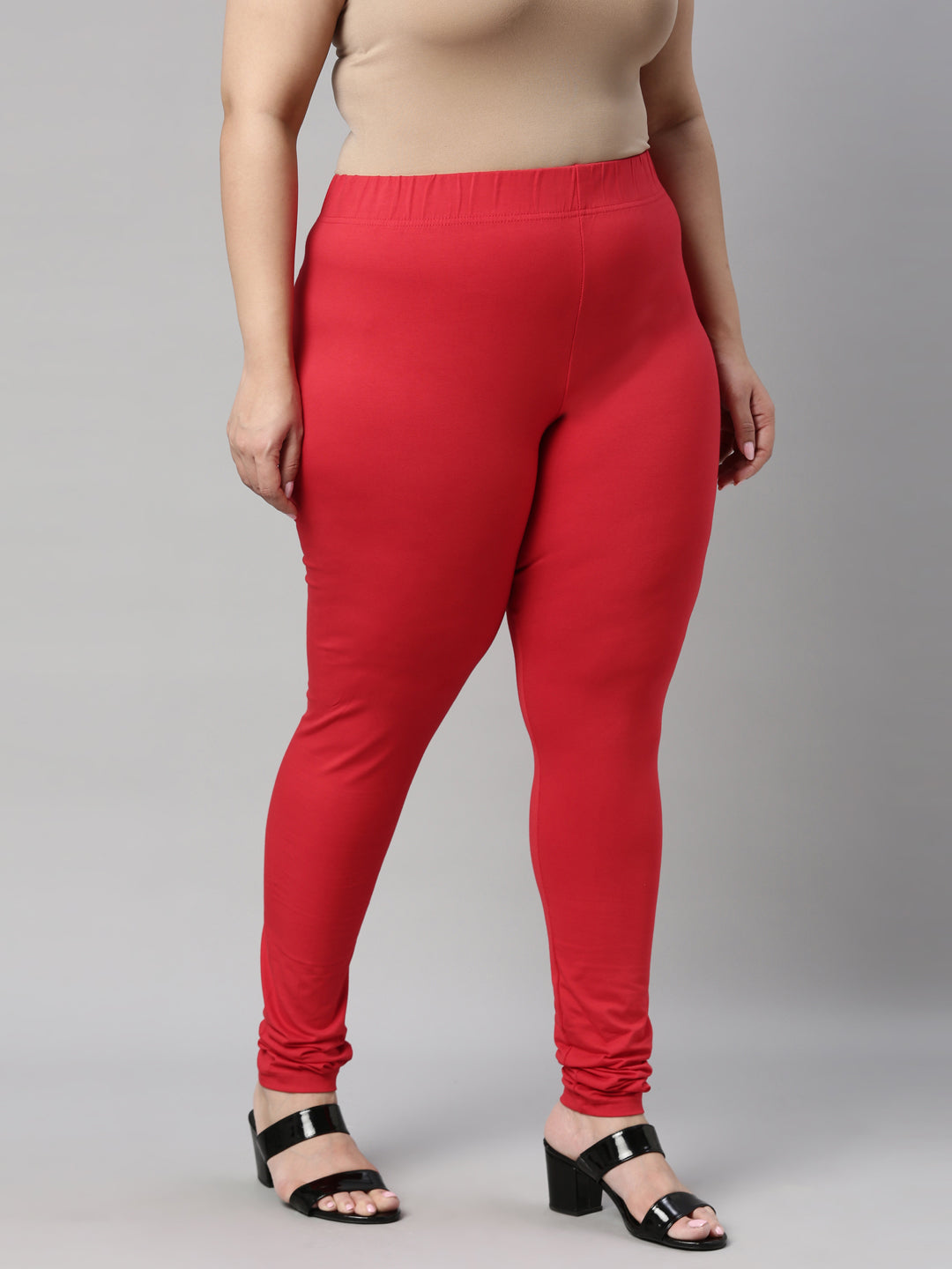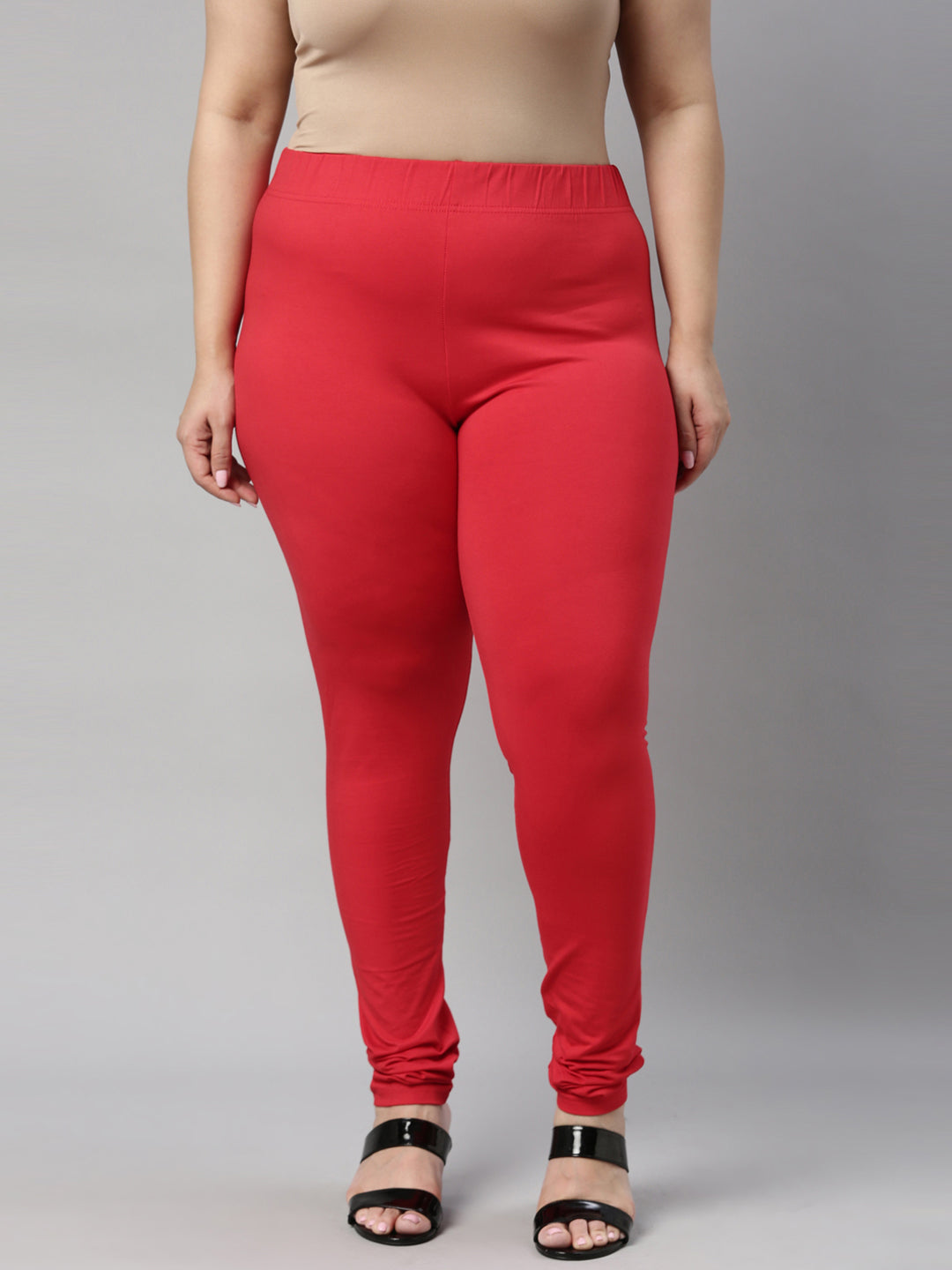 Go chic with a pair of Dark Red Solid Churidar Leggings. Made from high quality cotton, it has a elasticised waistband & gathers at the hemline.