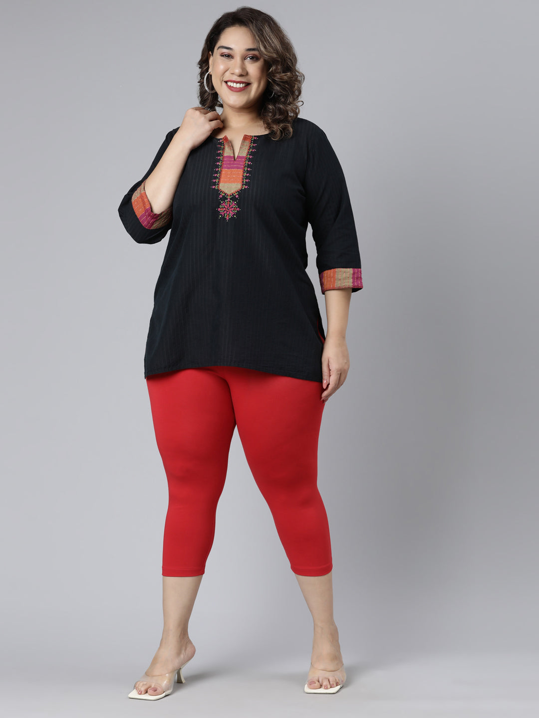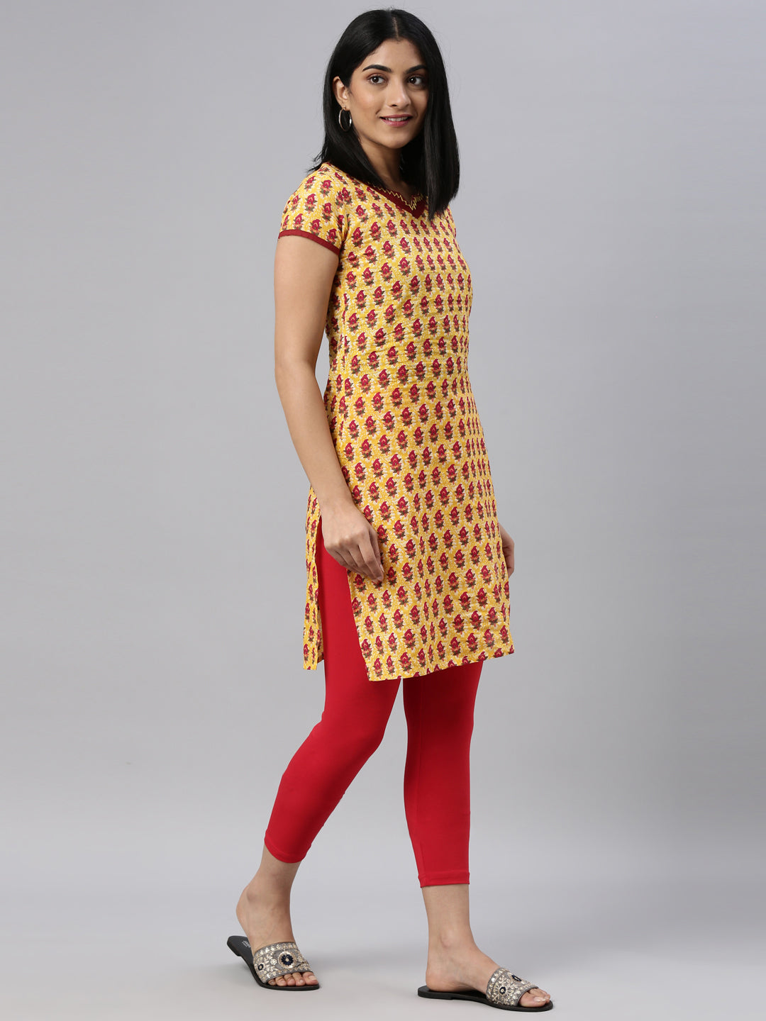 Go the ethnic way with our Solid Dark Red Cropped Leggings. Made from Cotton & Elastane, it has a elasticised waistband, slim fit & is of 7/8th length.