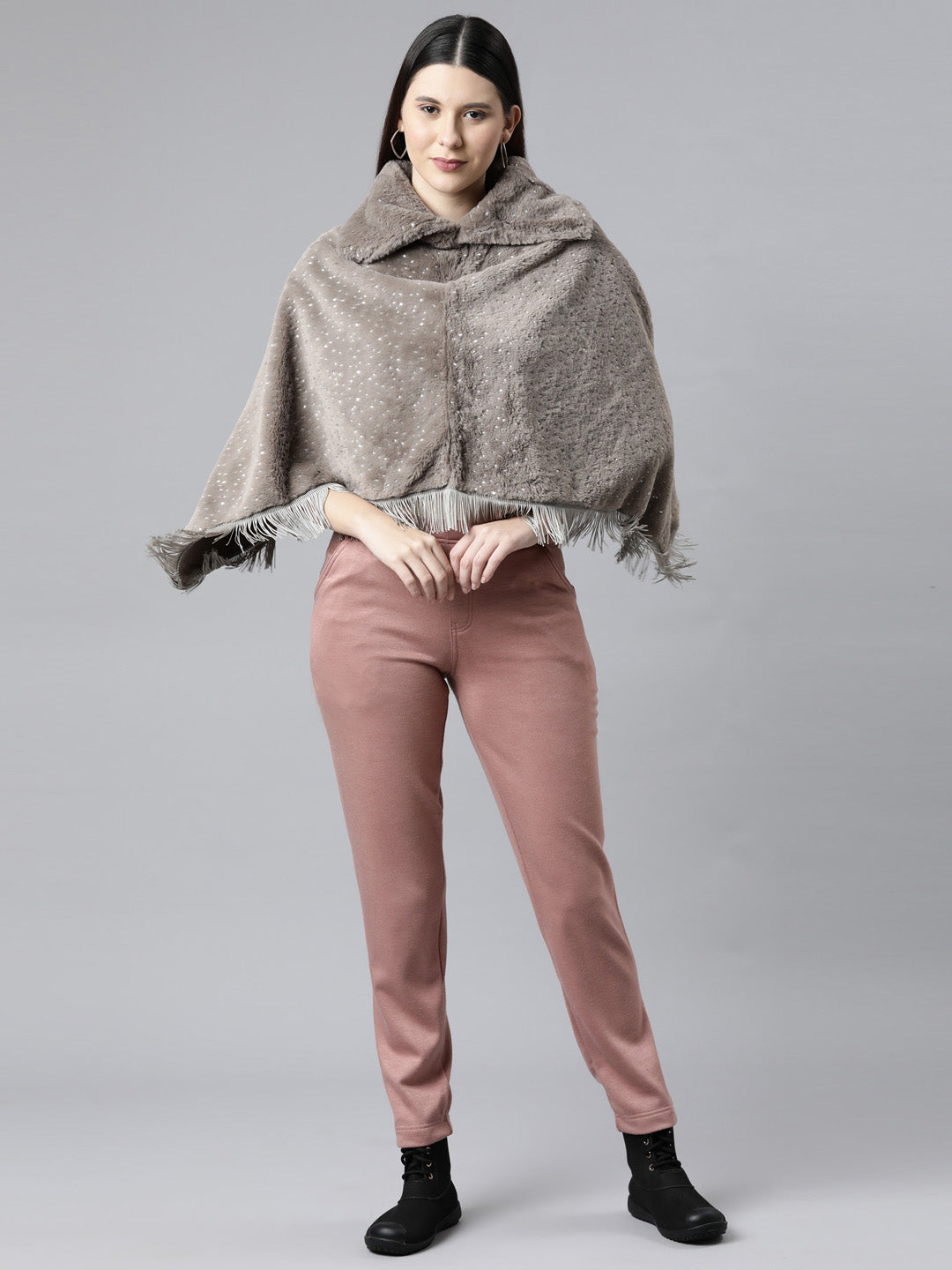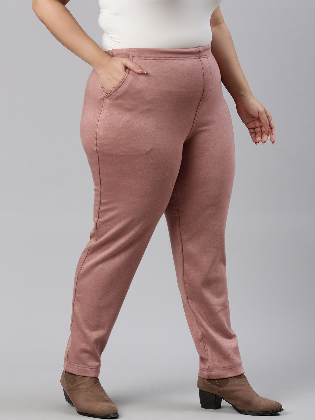 Stay warm this winter in the Solid Dusty Pink Mid Rise Ultra Warm Treggings. Made from Fleece, this mid rise slip on trousers with elasticised waistband & slim fit are perfect for board meetings or night out in the town. It has two side pockets with ankle length.