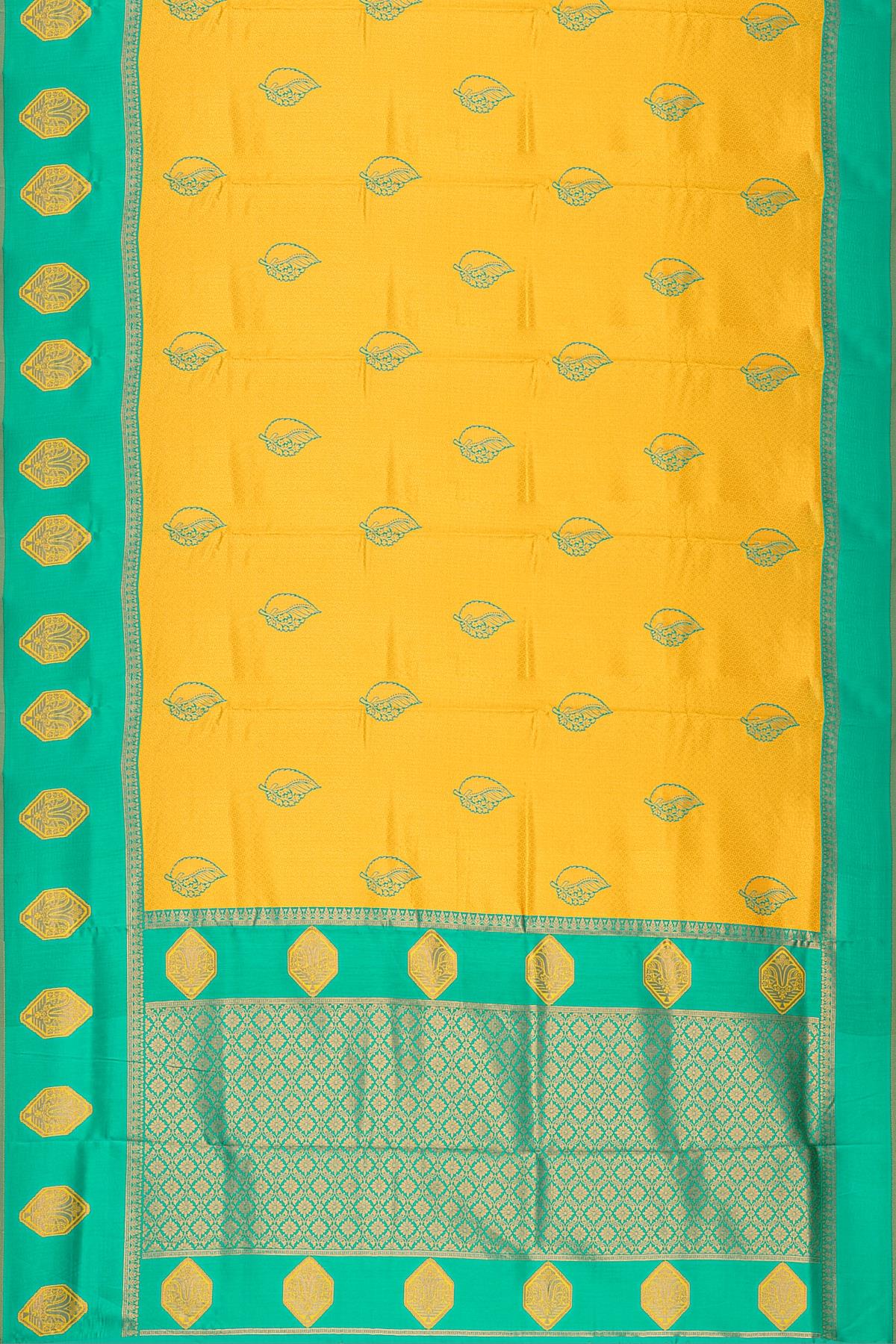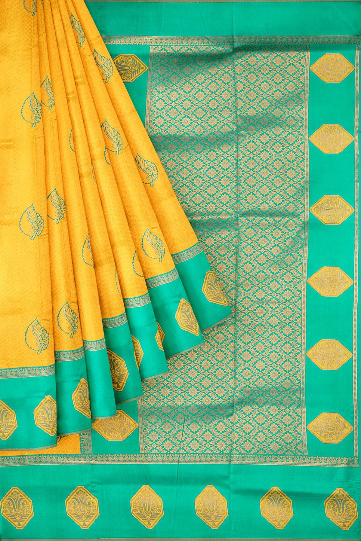 YELLOW and SEA GREEN BROCADE BUTA SILK Saree with KANCHIPURAM